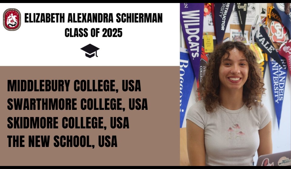 Our student Elizabeth Schierman will pursue her studies at Middlebury College in the USA ...