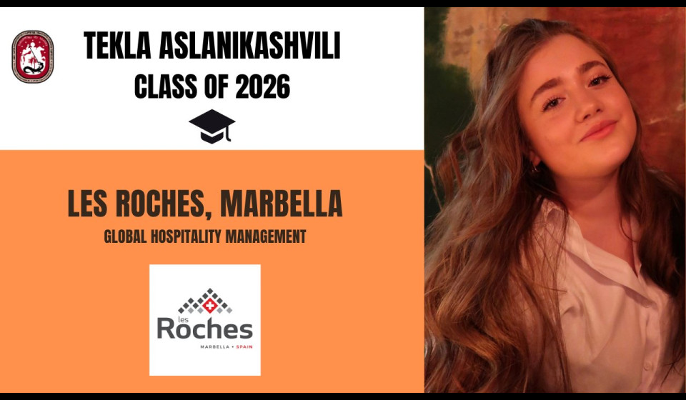 Our student, Tekla Aslanikashvili, will continue her studies in Spain at Les Roches Marbella, pursuing Global Hospitality Management.