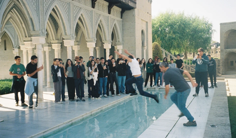 The next day, the trip continued with a visit to the Rabati Fortress. Upon entering, the students were captivated by the beauty of the place and snapped many photos to keep as memories. Alas, they eventually came across the famous pool where Levan Ghambashidze took a brave leap during last year’s junior field trip. Everyone gathered around the pool, took out their phones and video cameras, waiting for the second attempt. This year was no different and Levan yet again dipped his leg in, ending up with a wet shoe. However, compared to last year, he wasn’t the only one jumping over the pool this time. The growing chant for Mr. Anthony forced him to take a leap too, ending with a big splash as well.